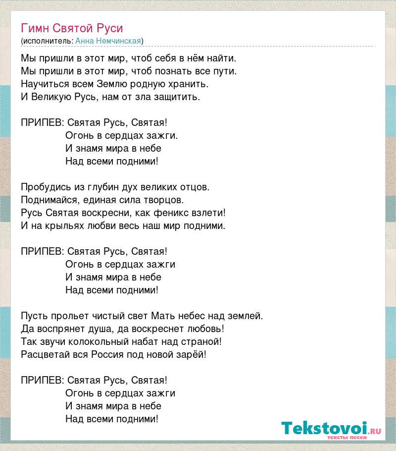 А как ты думаешь, о чем песня "Гимн Святой Руси" ?