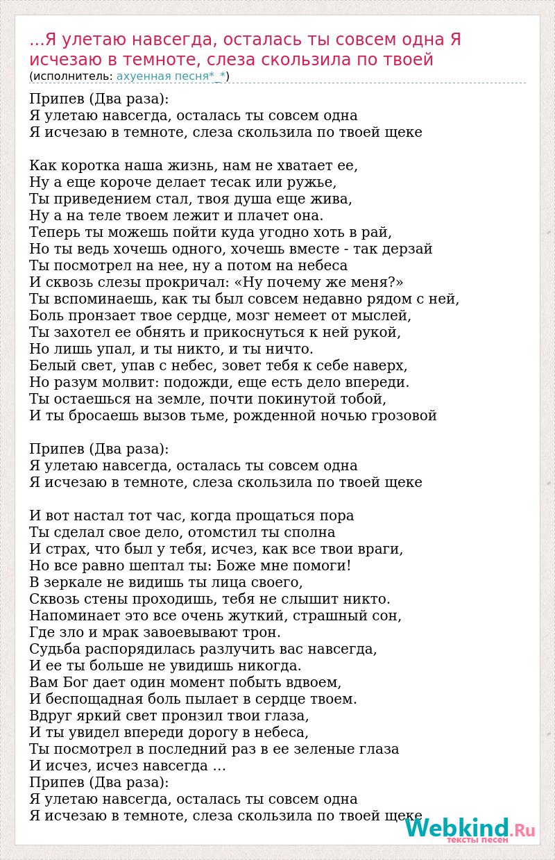 ...Я улетаю навсегда, осталась ты совсем одна Я исчезаю в темноте, слез
