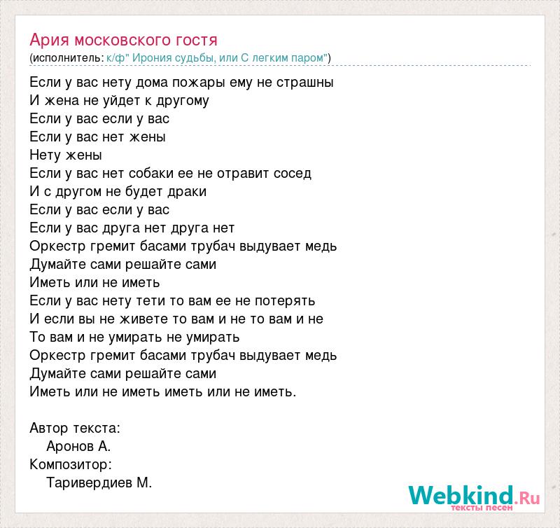 А как ты думаешь, о чем песня "Ария московского гостя" ?