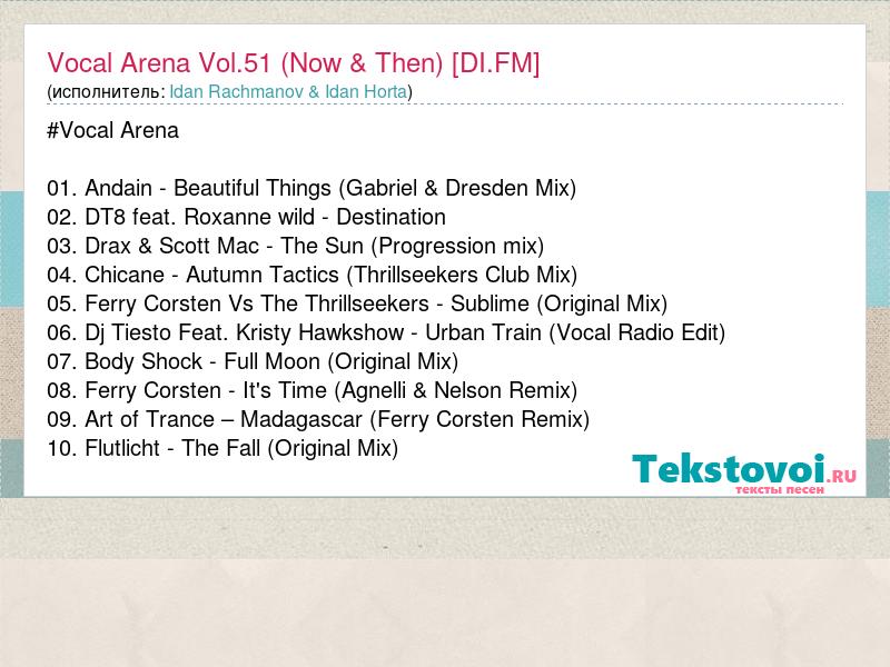 А как ты думаешь, о чем песня "Vocal Arena Vol.51 (Now & Then) [DI.FM]" ?