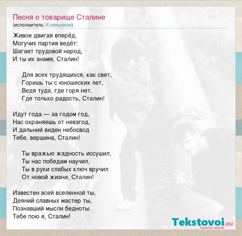 А как ты думаешь, о чем песня "Песня о товарище Сталине" ?