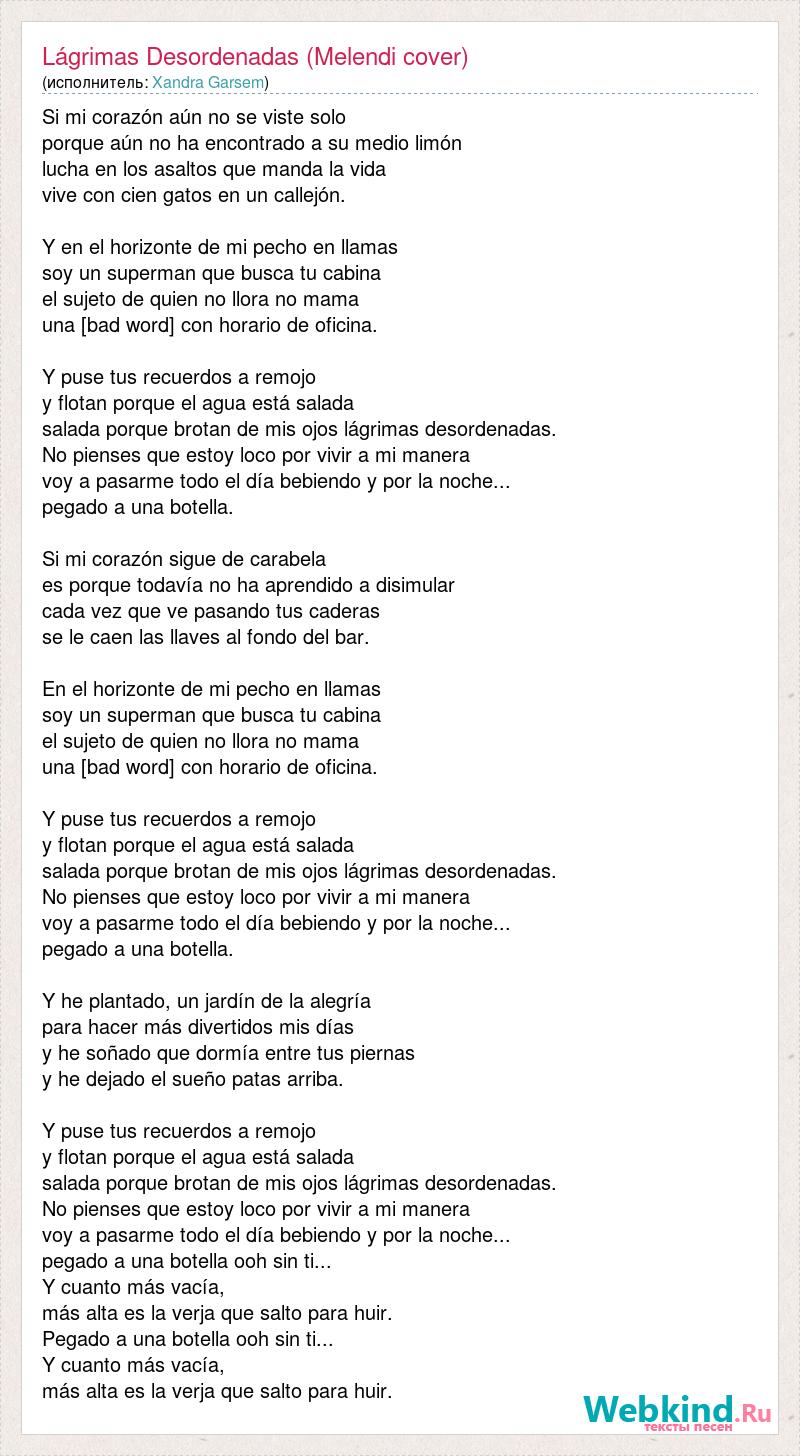 А как ты думаешь, о чем песня "Lágrimas Desordenadas (Melendi cover)" ?