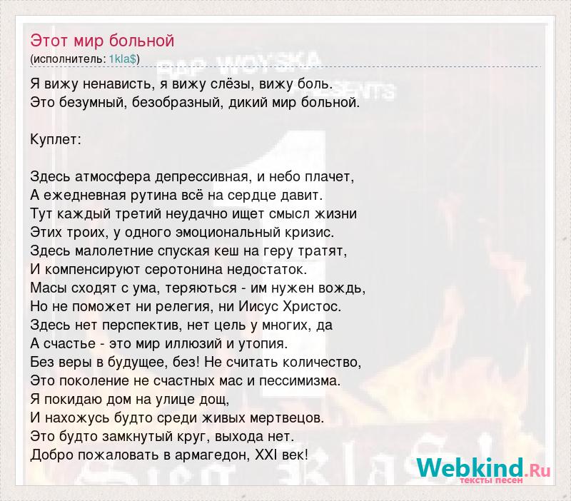 А как ты думаешь, о чем песня "Этот мир больной" ?