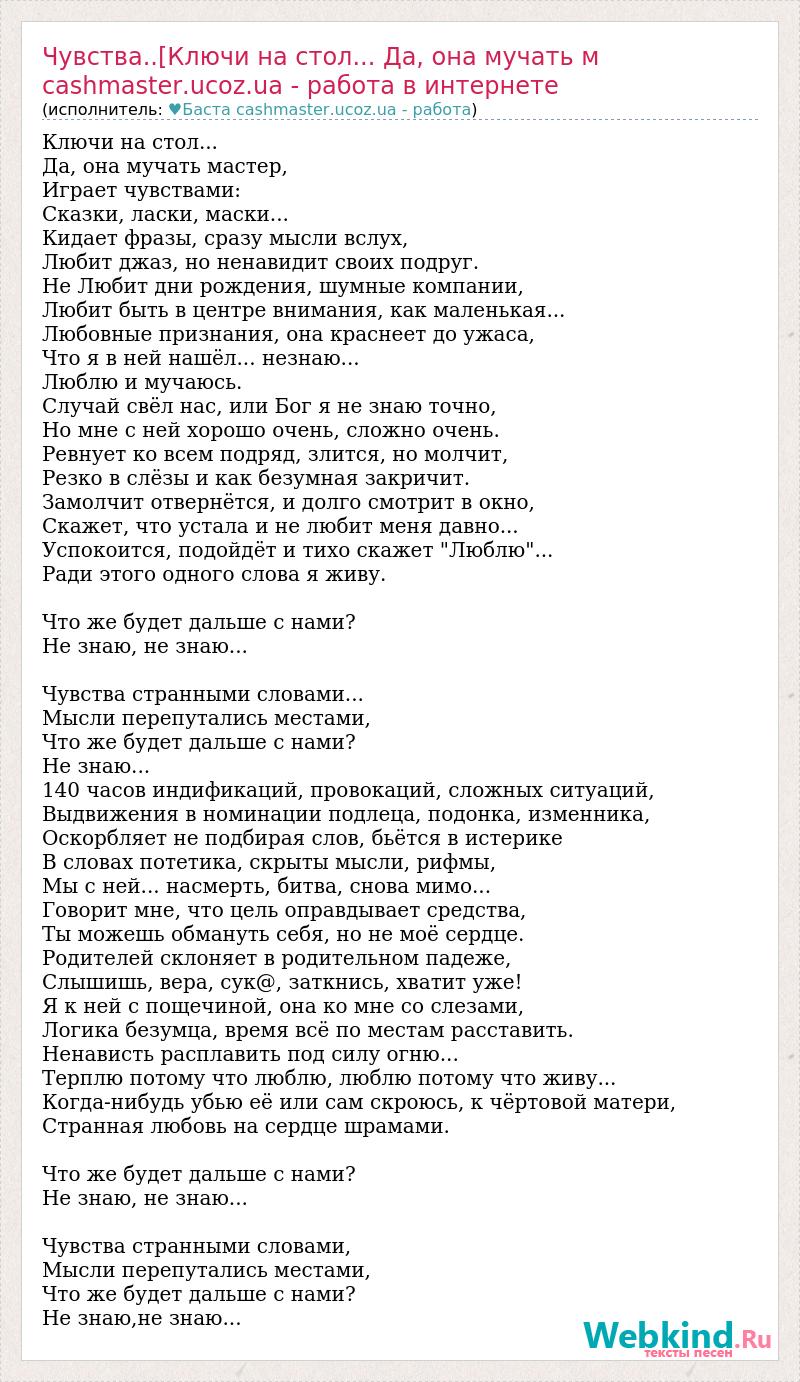 Главная→Исполнители→♥Баста cashmaster.ucoz.ua - работа→Чувства..[Ключи на стол... Да, она мучать м cashmaster.ucoz.ua - рабо