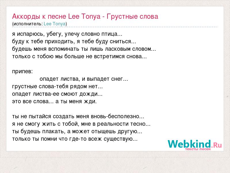 А как ты думаешь, о чем песня "Аккорды к песне Lee Tonya - Грустные слова" ?