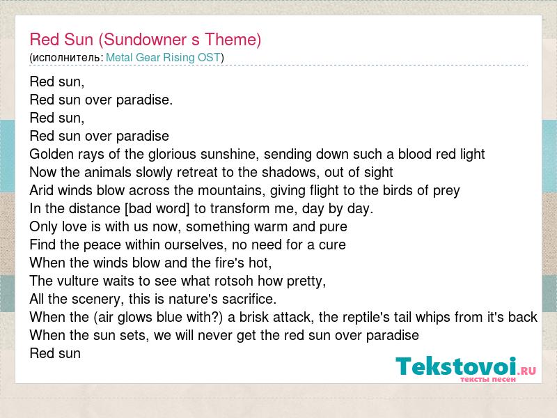 А как ты думаешь, о чем песня "Red Sun (Sundowner s Theme)" ?