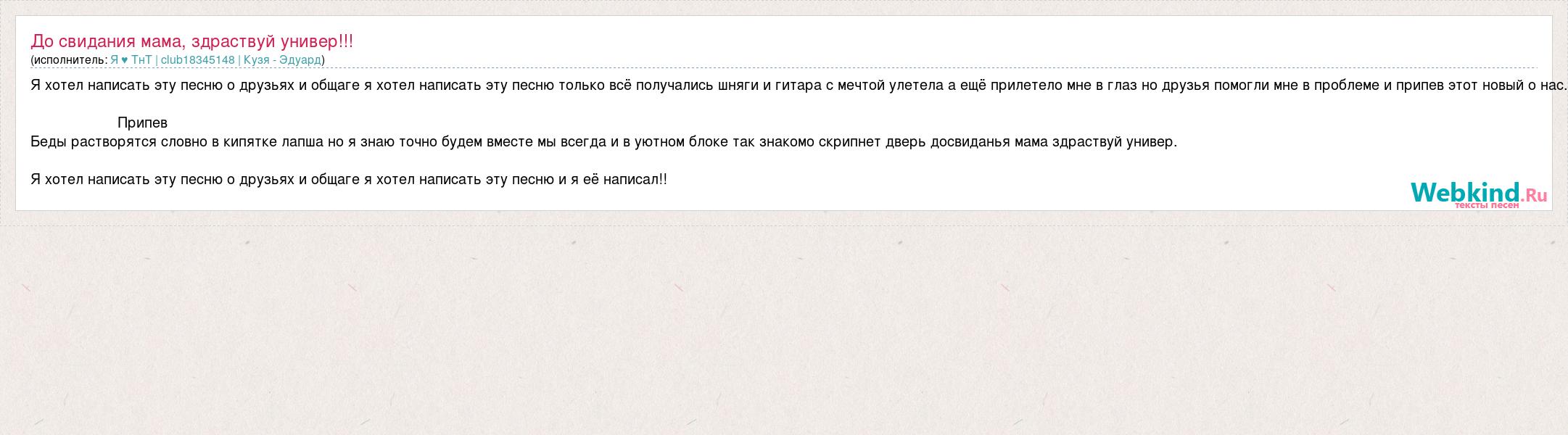 А как ты думаешь, о чем песня "До свидания мама, здраствуй универ!!!" ?