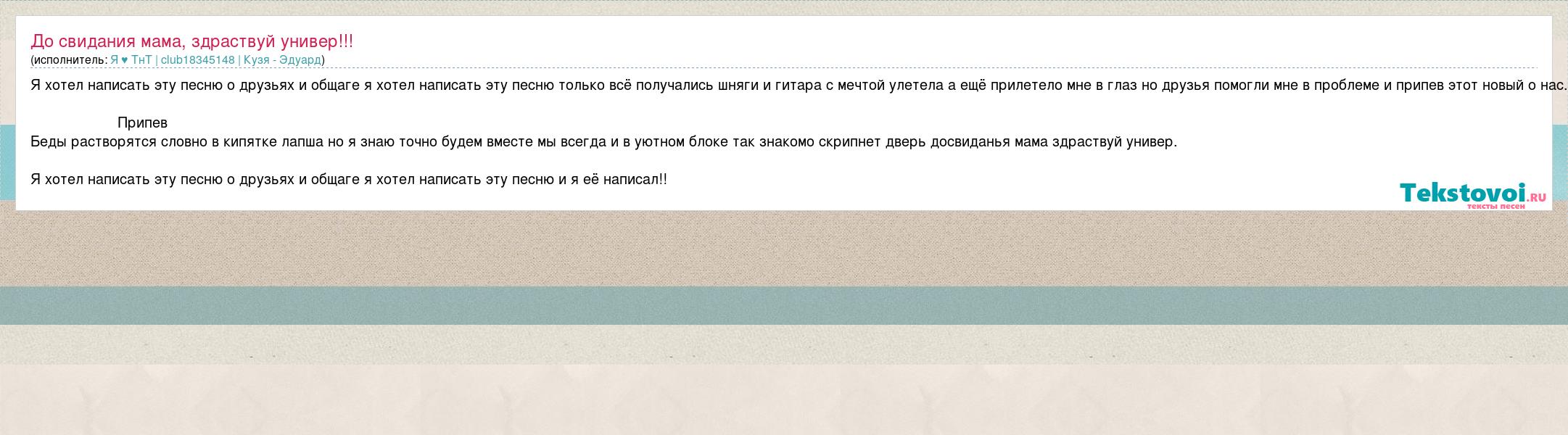 А как ты думаешь, о чем песня "До свидания мама, здраствуй универ!!!" ?