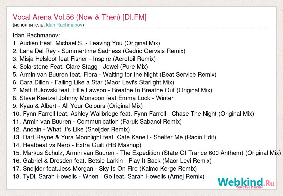 А как ты думаешь, о чем песня "Vocal Arena Vol.56 (Now & Then) [DI.FM]" ?