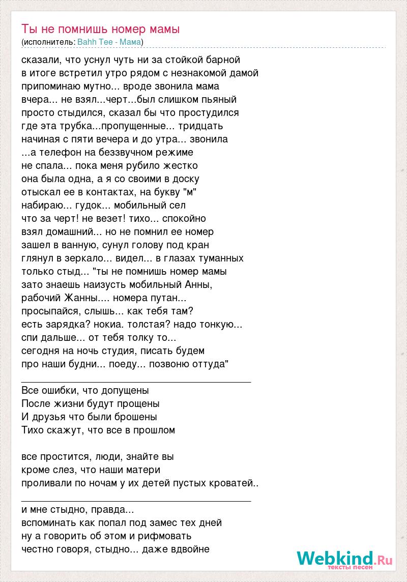 А как ты думаешь, о чем песня "Ты не помнишь номер мамы" ?