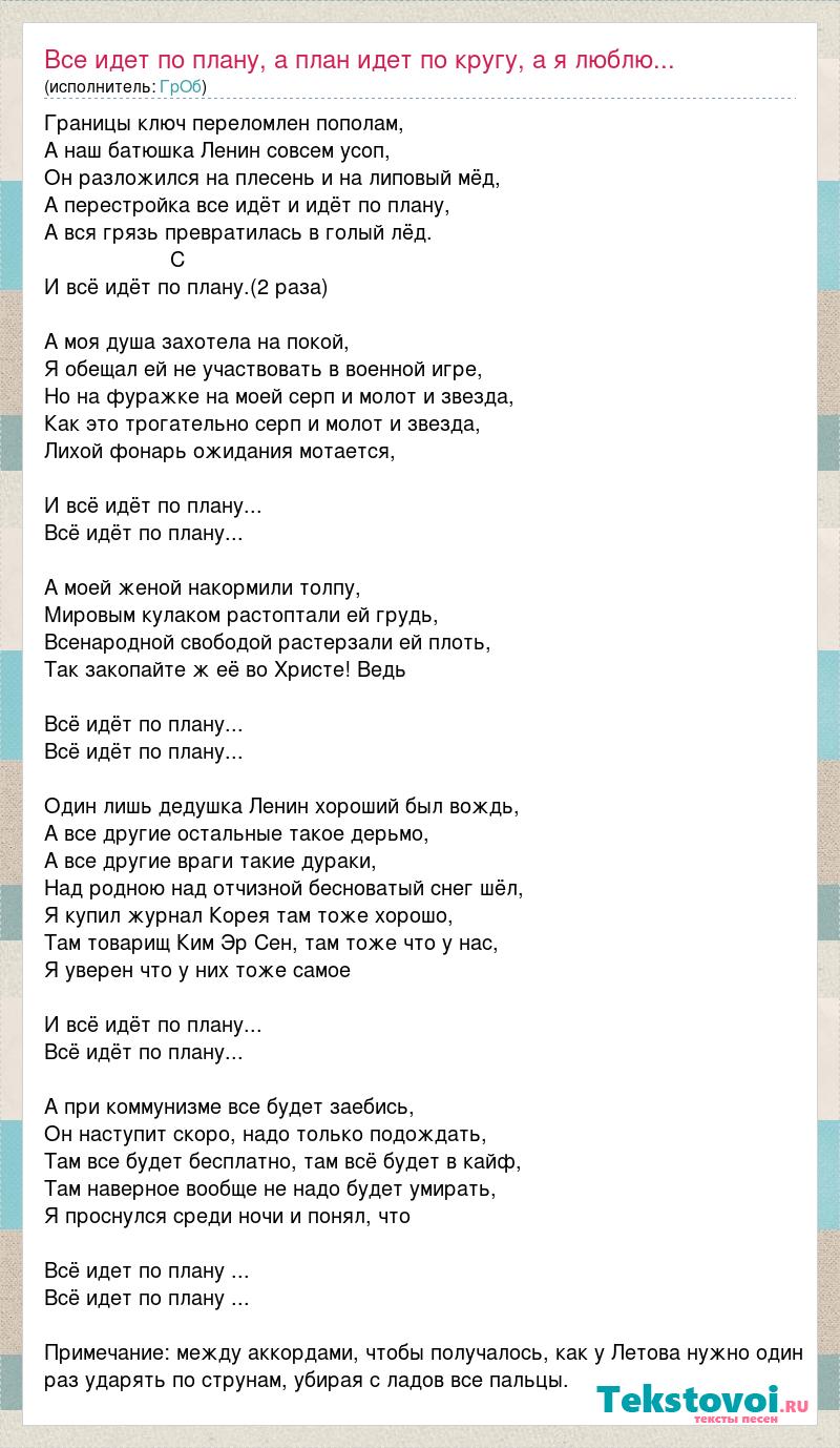 А как ты думаешь, о чем песня "Все идет по плану, а план идет по кругу, а я люблю..." ?