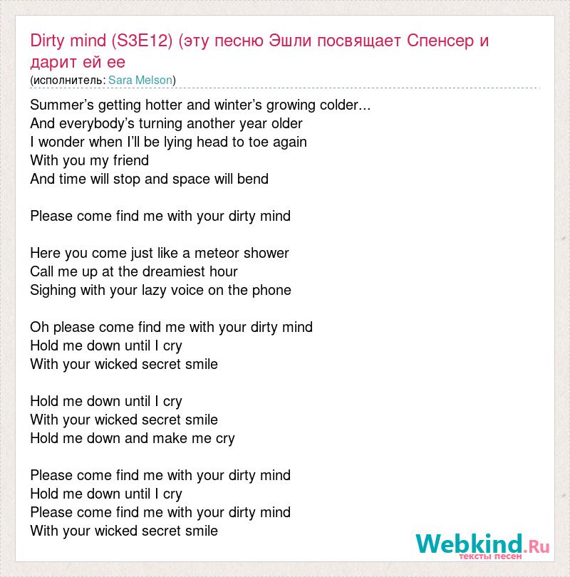 А как ты думаешь, о чем песня "Dirty mind (S3E12) (эту песню Эшли посвящает Спенсер и дарит ей ее на День рожде" ?