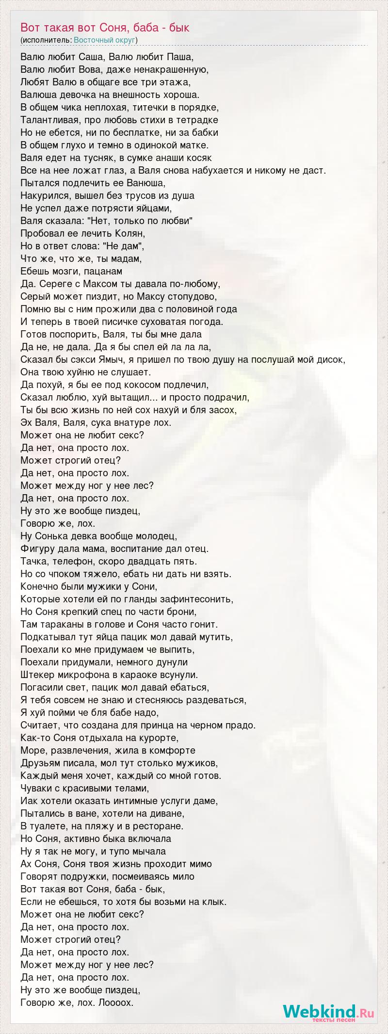 А как ты думаешь, о чем песня "Вот такая вот Соня, баба - бык" ?