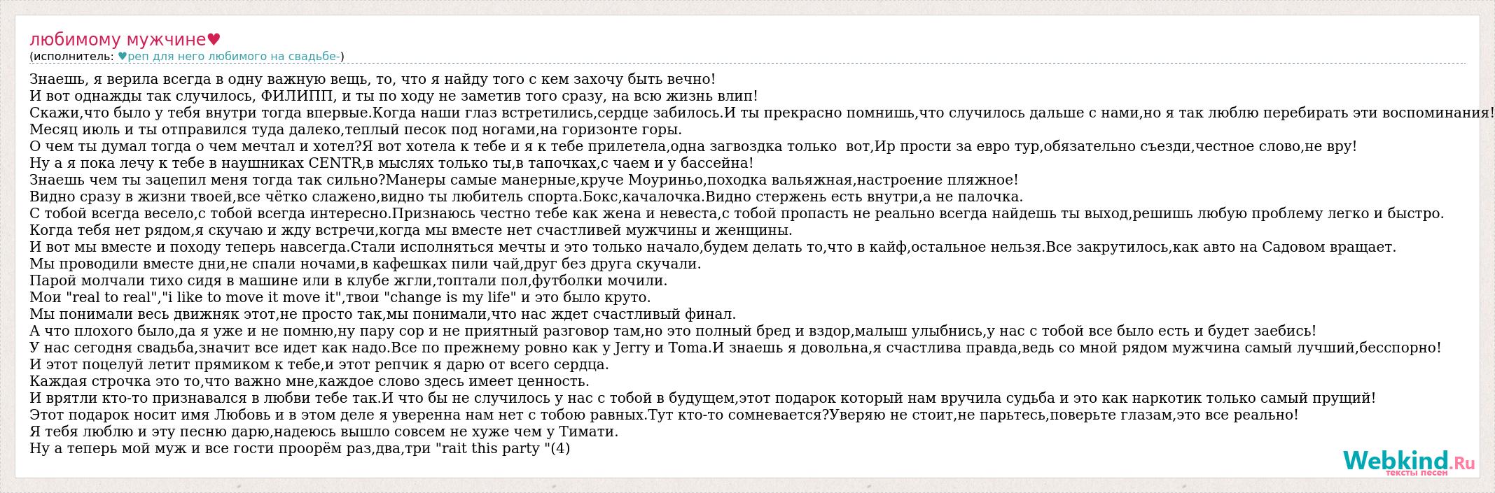ГлавнаяИсполнители♥реп для него любимого на свадьбе-Любимому мужчине♥