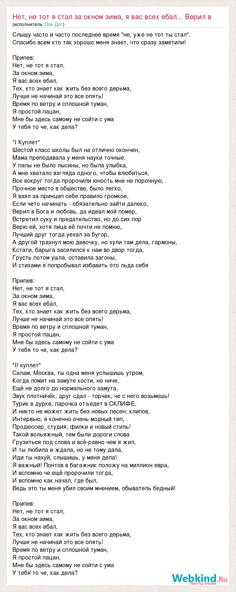 Нет, не тот я стал за окном зима, я вас всех ебал... Верил в бога