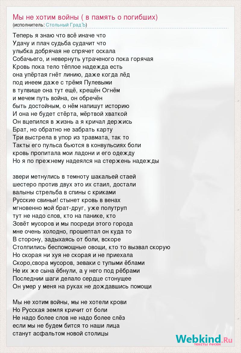 А как ты думаешь, о чем песня "Мы не хотим войны ( в память о погибших)" ?