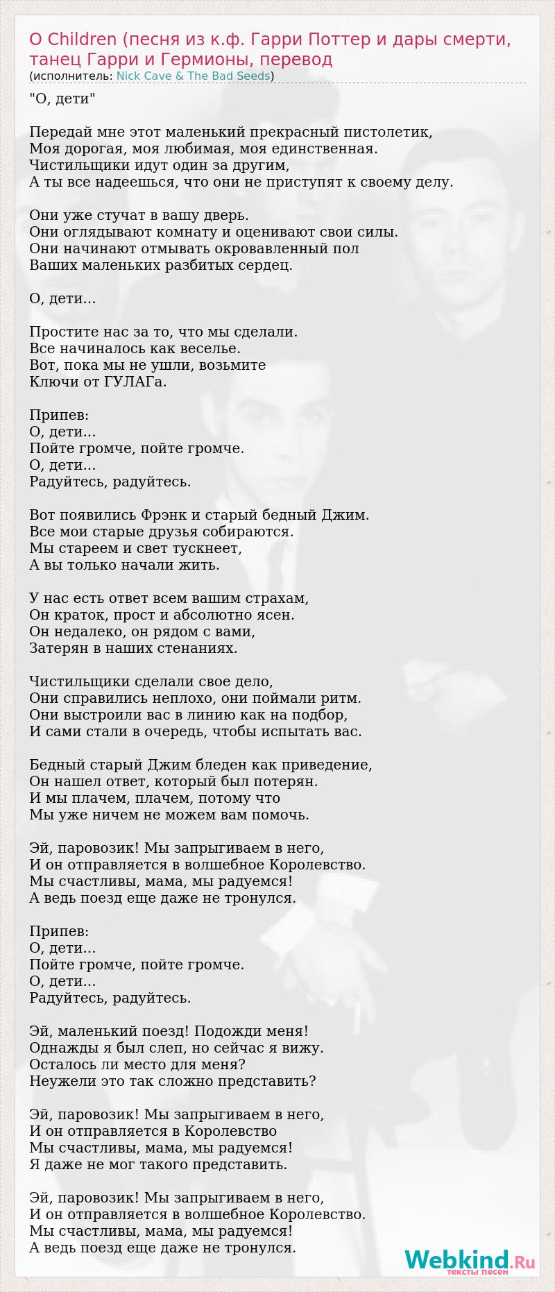 Главная→Исполнители→Nick Cave & The Bad Seeds→O Children (песня из к.ф. Гарри Поттер и дары смерти, танец Гарри и Ге