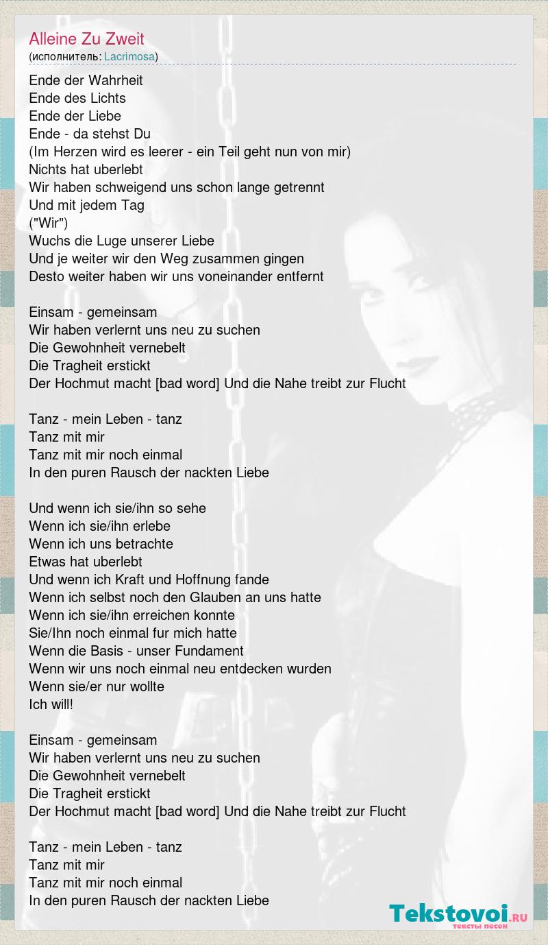 А как ты думаешь, о чем песня "Alleine Zu Zweit" ?