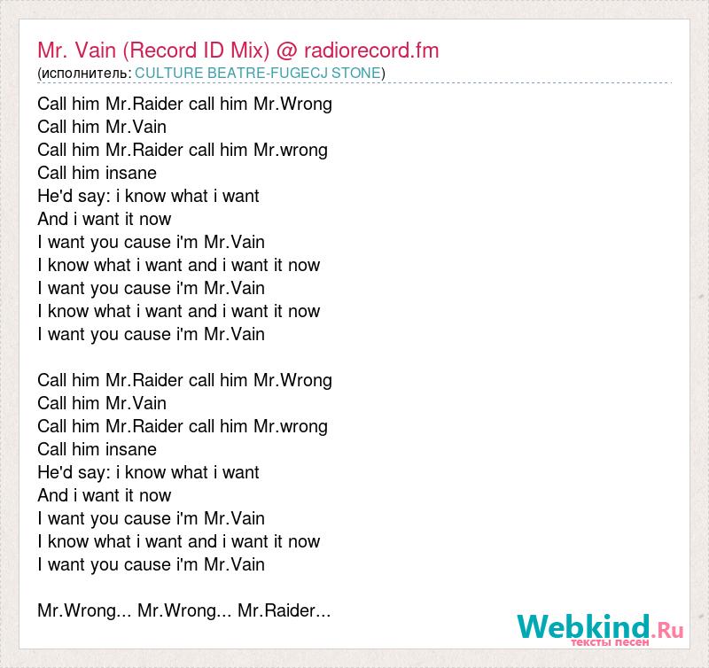 А как ты думаешь, о чем песня "Mr. Vain (Record ID Mix) @ radiorecord.fm" ?