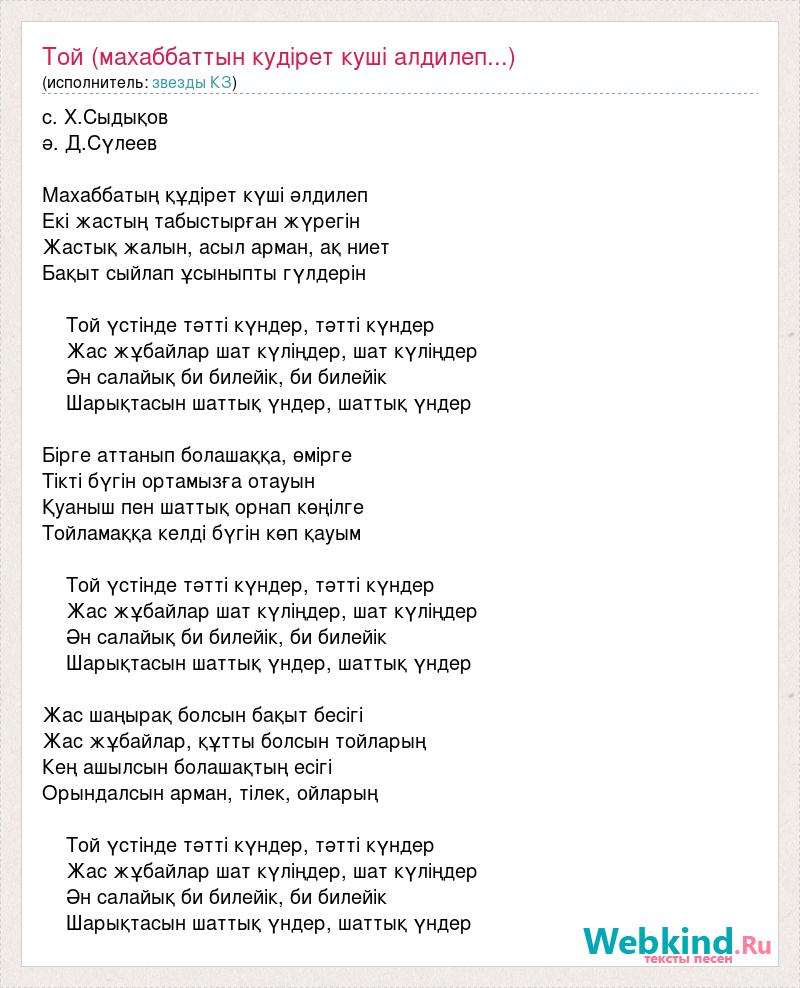 А как ты думаешь, о чем песня "Той (махаббаттын кудірет куші алдилеп...)" ?