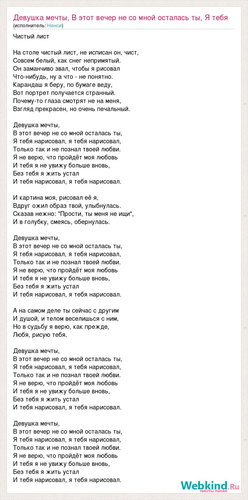 Главная→Исполнители→Ненси→Девушка мечты, В этот вечер не со мной осталась ты, Я тебя нарисовал, я тебя
