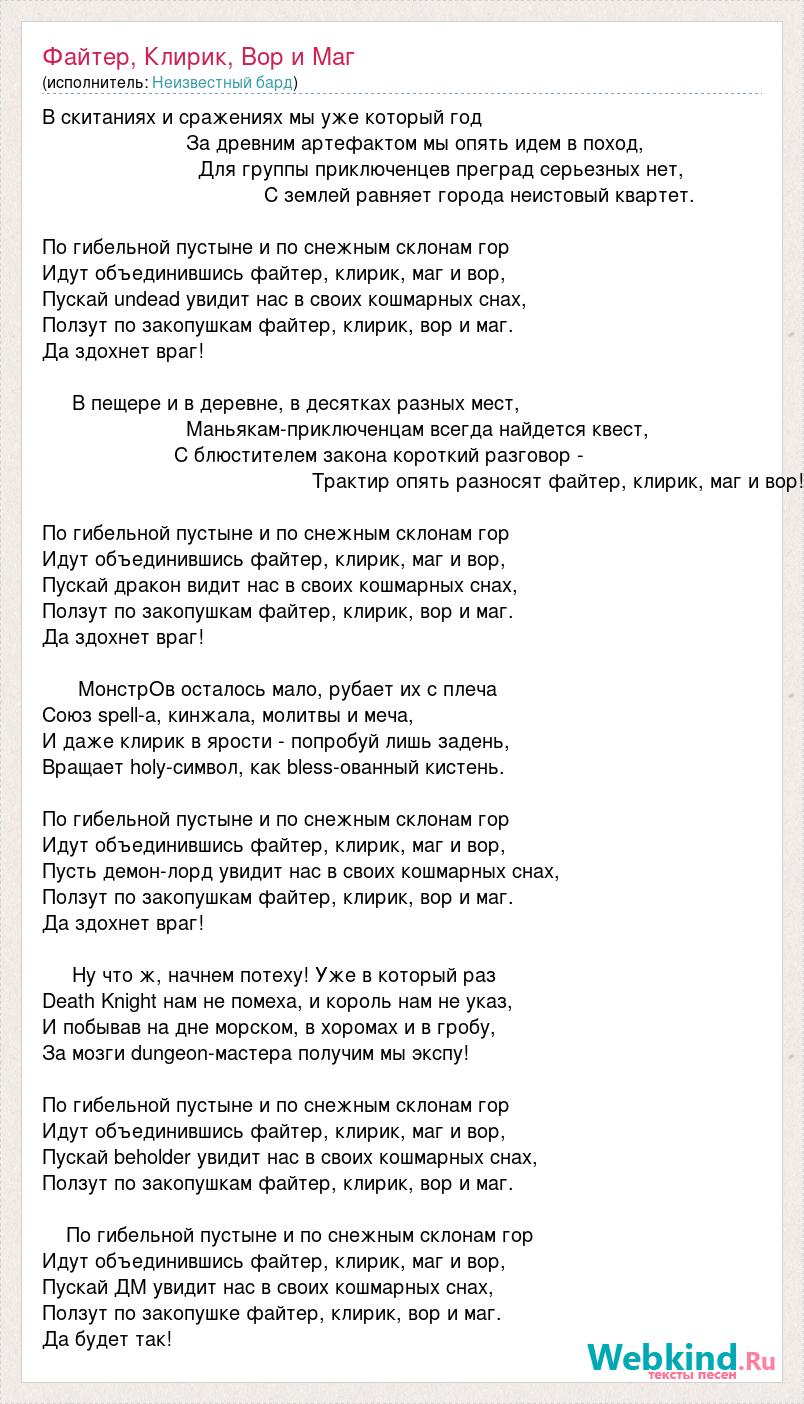 А как ты думаешь, о чем песня "Файтер, Клирик, Вор и Маг" ?