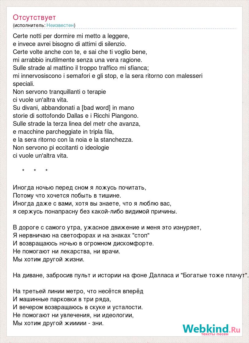 А как ты думаешь, о чем песня "Certe notti per dormire mi metto a leggere" ?