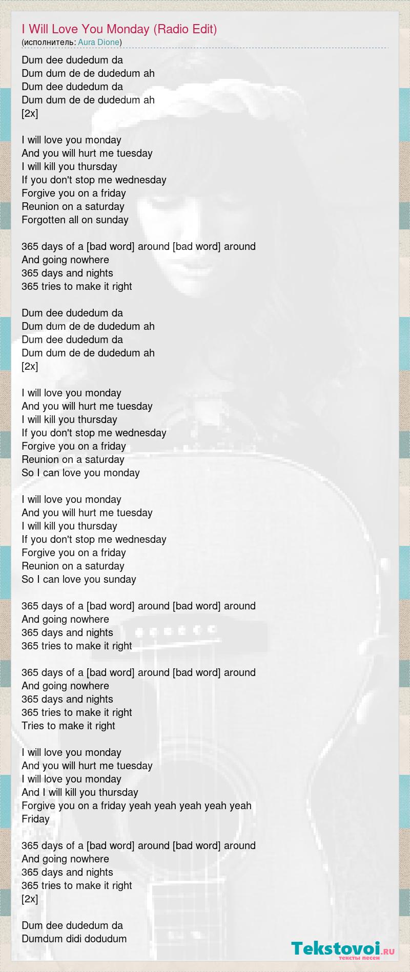 А как ты думаешь, о чем песня "I Will Love You Monday (Radio Edit)" ?