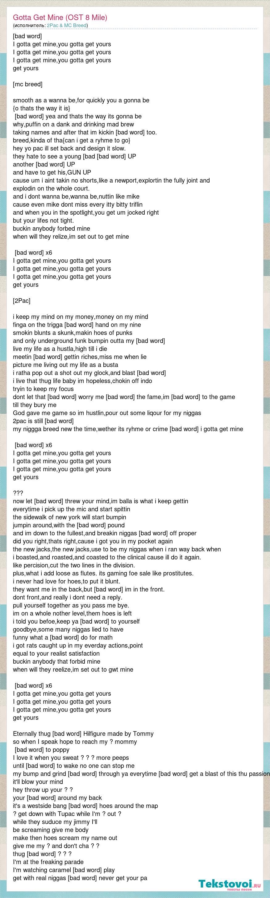 А как ты думаешь, о чем песня "Gotta Get Mine (OST 8 Mile)" ?