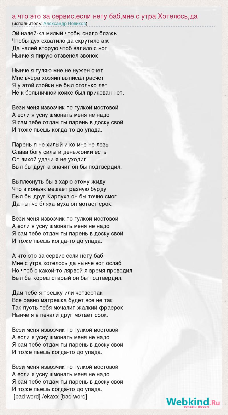 Главная→Исполнители→Александр Новиков→А что это за сервис,если нету баб,мне с утра Хотелось,да нынче вот ослаб,НО чт