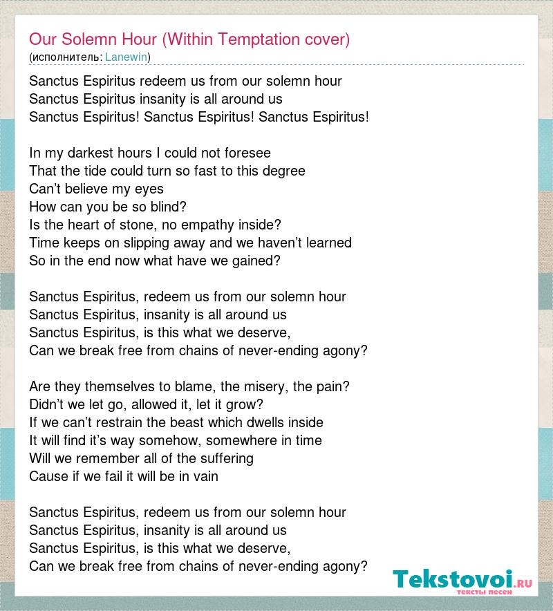 А как ты думаешь, о чем песня "Our Solemn Hour (Within Temptation cover)" ?