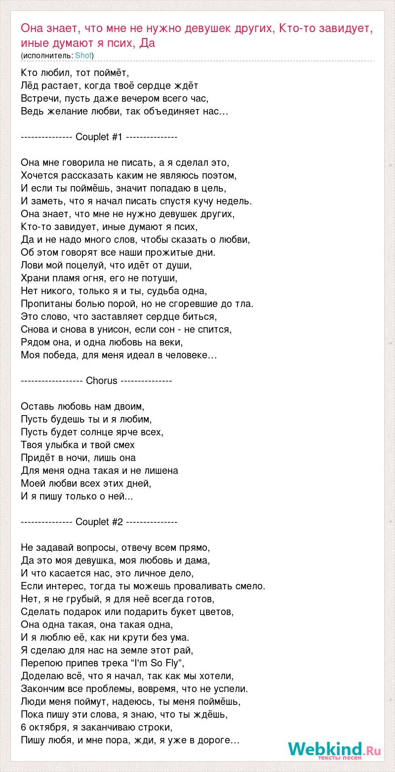Главная→Исполнители→Shot→Она знает, что мне не нужно девушек других, Кто-то завидует, иные думают я пс