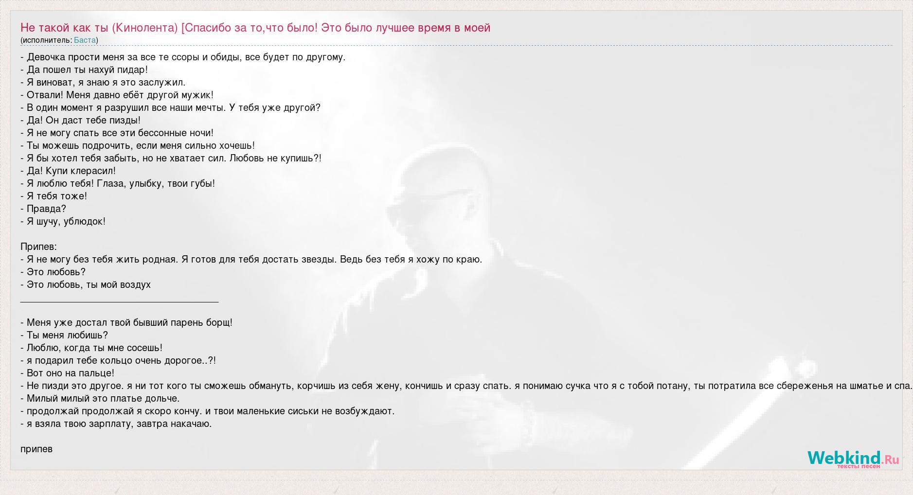 Главная→Исполнители→Баста→Не такой как ты (Кинолента) [Спасибо за то,что было! Это было лучшее время в мое