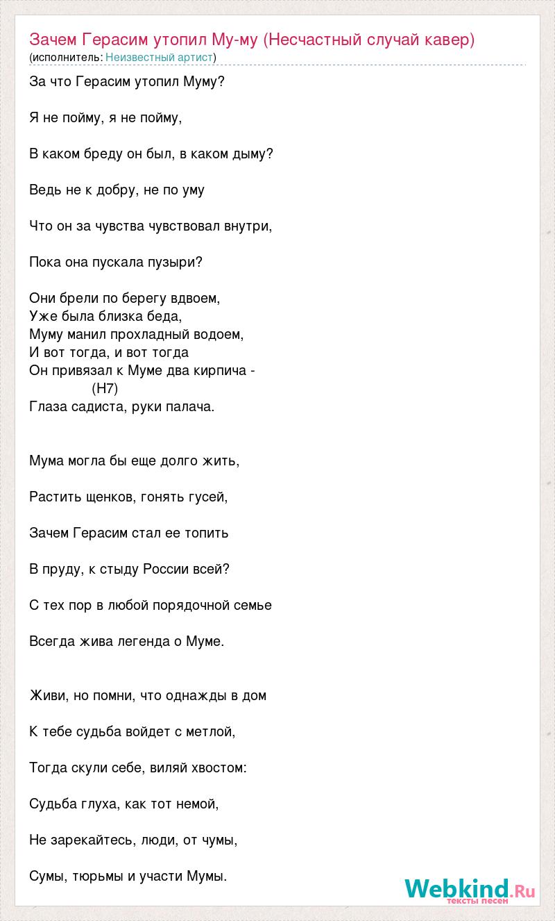 А как ты думаешь, о чем песня "Зачем Герасим утопил Му-му (Несчастный случай кавер)" ?