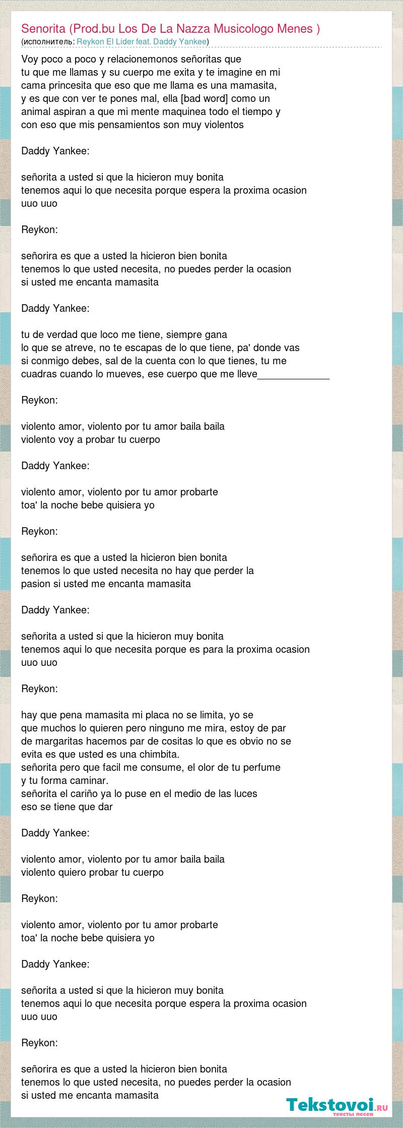 Главная→Исполнители→Reykon El Lider feat. Daddy Yankee→Senorita (Prod.bu Los De La Nazza Musicologo Menes )