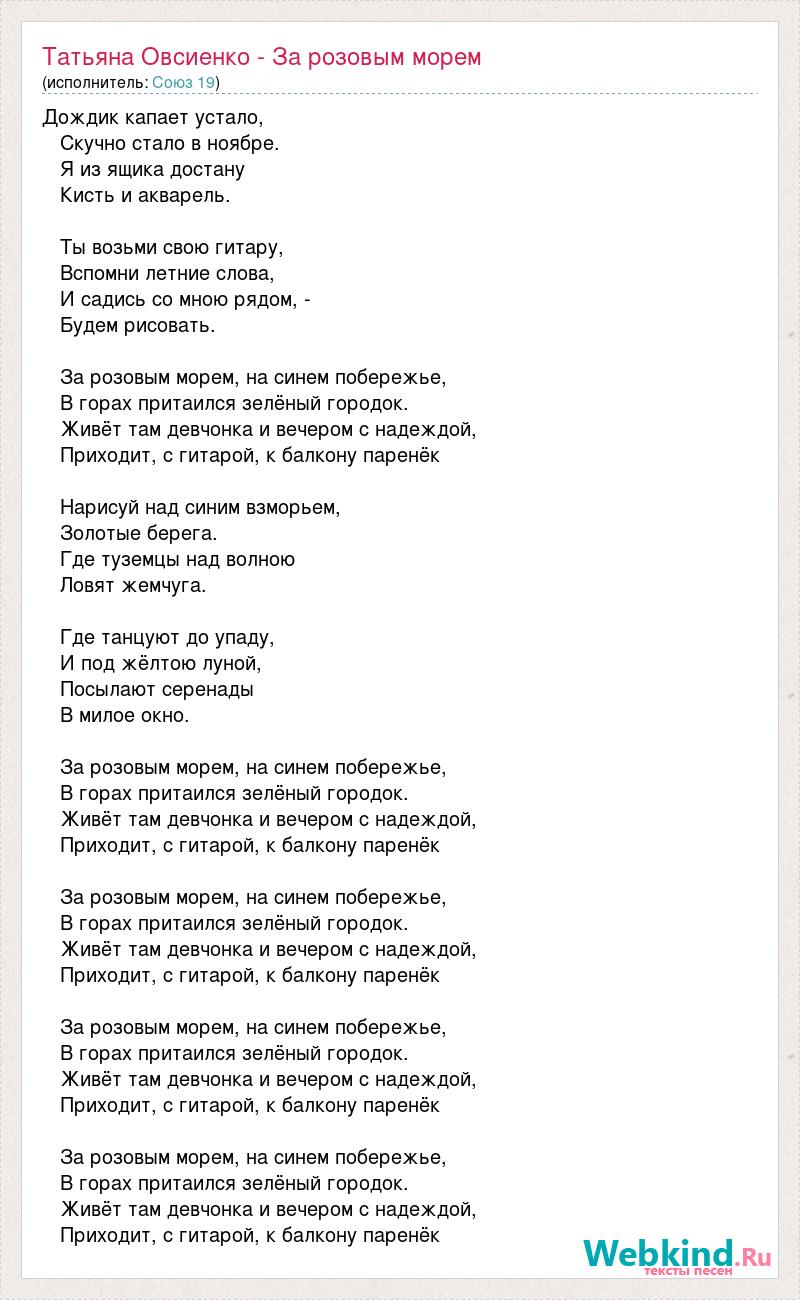 А как ты думаешь, о чем песня "Татьяна Овсиенко - За розовым морем" ?