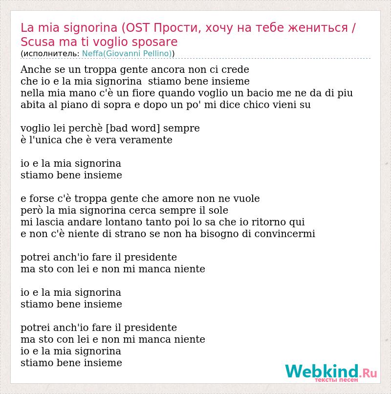 А как ты думаешь, о чем песня "La mia signorina (OST Прости, хочу на тебе жениться / Scusa ma ti voglio sp" ?