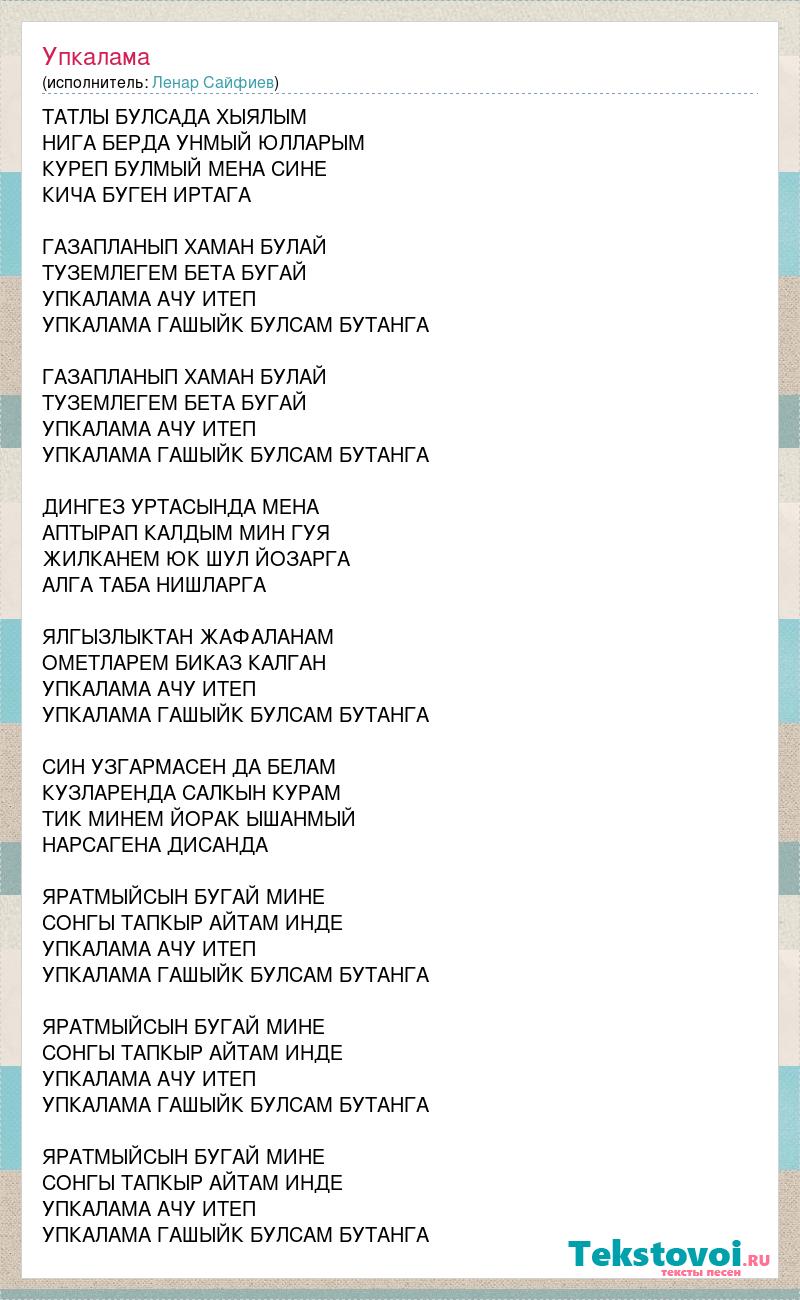 ТАТЛЫ БУЛСАДА ХЫЯЛЫМ НИГА БЕРДА УНМЫЙ ЮЛЛАРЫМ КУРЕП БУЛМЫЙ МЕНА СИНЕ КИЧА БУГЕН ИРТАГА ГАЗАПЛАНЫП ХАМАН БУЛАЙ ТУЗЕМЛЕГЕМ БЕТА БУГАЙ УПКАЛАМА АЧУ ИТЕП УПКАЛАМА ГАШЫЙК БУЛСАМ БУТАНГА ГАЗАПЛАНЫП ХАМАН БУЛАЙ ТУЗЕМЛЕГЕМ БЕТА БУГАЙ УПКАЛАМА АЧУ ИТЕП УПКАЛАМА ГАШЫЙК БУЛСАМ БУТАНГА ДИНГЕЗ УРТАСЫНДА МЕНА АПТЫРАП КАЛДЫМ МИН ГУЯ ЖИЛКАНЕМ ЮК ШУЛ ЙОЗАРГА АЛГА ТАБА НИШЛАРГА ЯЛГЫЗЛЫКТАН ЖАФАЛАНАМ ОМЕТЛАРЕМ БИКАЗ КАЛГАН УПКАЛАМА АЧУ ИТЕП УПКАЛАМА ГАШЫЙК БУЛСАМ БУТАНГА СИН УЗГАРМАСЕН ДА БЕЛАМ КУЗЛАРЕНДА САЛКЫН КУРАМ ТИК МИНЕМ ЙОРАК ЫШАНМЫЙ НАРСАГЕНА ДИСАНДА ЯРАТМЫЙСЫН БУГАЙ МИНЕ СОНГЫ ТАПКЫР АЙТАМ ИНДЕ УПКАЛАМА АЧУ ИТЕП УПКАЛАМА ГАШЫЙК БУЛСАМ БУТАНГА ЯРАТМЫЙСЫН БУГАЙ МИНЕ СОНГЫ ТАПКЫР АЙТАМ ИНДЕ УПКАЛАМА АЧУ ИТЕП УПКАЛАМА ГАШЫЙК БУЛСАМ БУТАНГА ЯРАТМЫЙСЫН БУГАЙ МИНЕ СОНГЫ ТАПКЫР АЙТАМ ИНДЕ УПКАЛАМА АЧУ ИТЕП УПКАЛАМА ГАШЫЙК БУЛСАМ БУТАНГА