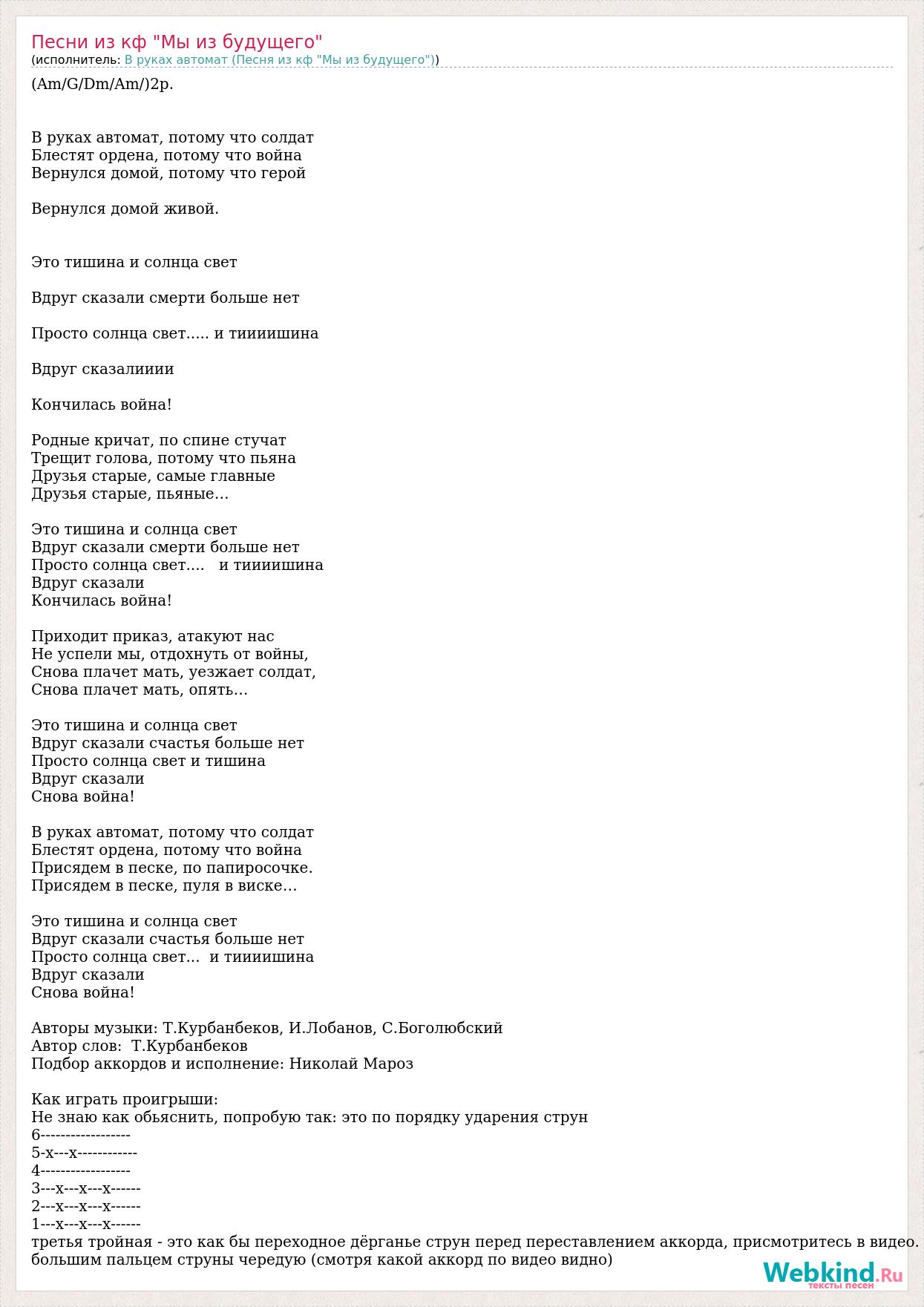 А как ты думаешь, о чем песня "Песни из кф "Мы из будущего"" ?