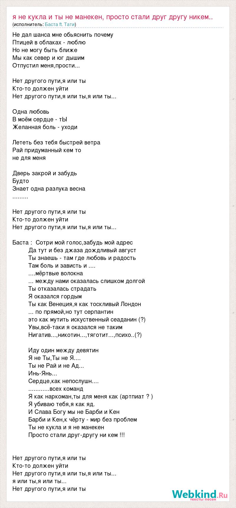 Я не кукла и ты не манекен, просто стали друг другу никем..