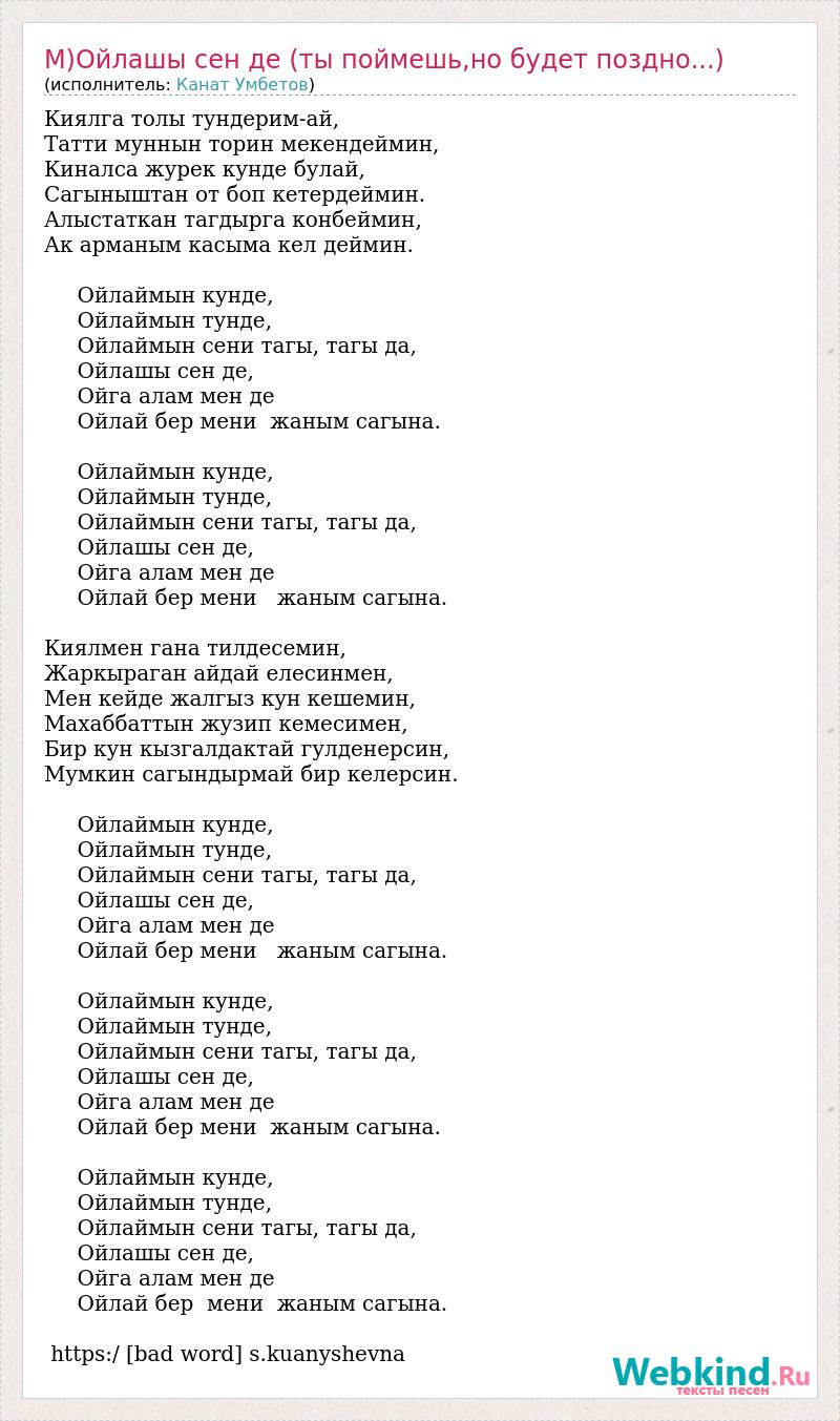 M)Ойлашы сен де (ты поймешь,но будет поздно...)