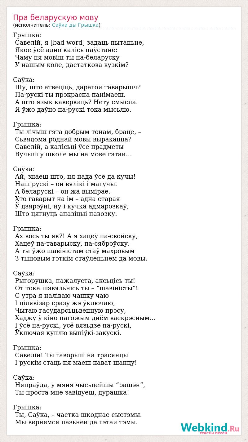 А как ты думаешь, о чем песня "Пра беларускую мову" ?