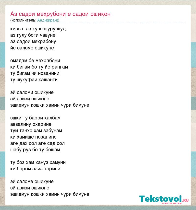 А как ты думаешь, о чем песня "Аз садои меҳрубони е садои ошиқон" ?