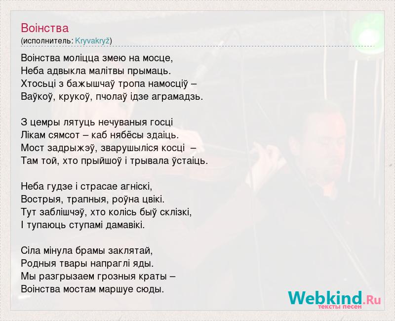 Воінства моліцца змею на мосце, Неба адвыкла малітвы прымаць. Хтосьці з бажышчаў тропа намосціў – Ваўкоў, крукоў, пчолаў ідзе аграмадзь. З цемры лятуць нечуваныя госці Лікам сямсот – каб нябёсы здаіць. Мост задрыжэў, зварушыліся косці – Там той, хто прыйшоў і трывала ўстаіць. Неба гудзе і страсае агніскі, Вострыя, трапныя, роўна цвікі. Тут заблішчэў, хто колісь быў склізкі, І тупаюць ступамі дамавікі. Сіла мінула брамы заклятай, Родныя твары напраглі яды. Мы разгрызаем грозныя краты – Воінства мостам маршуе сюды.