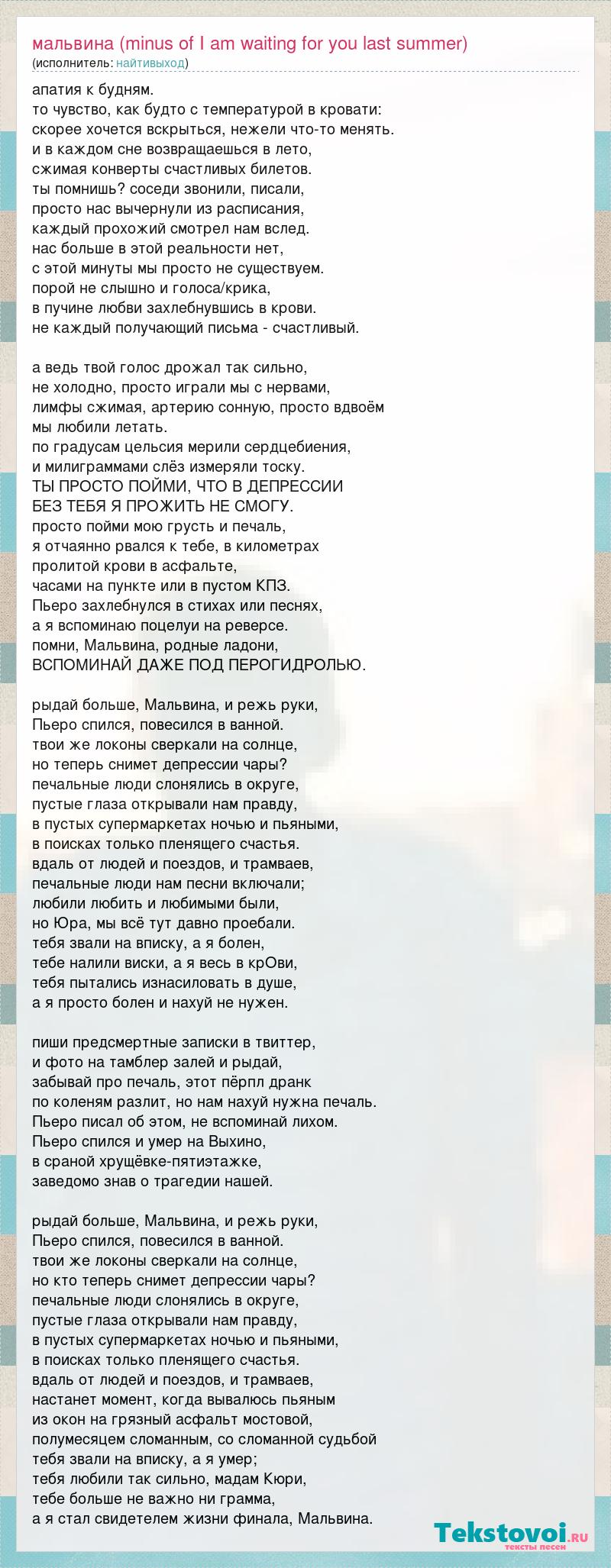 А как ты думаешь, о чем песня "Мальвина (minus of I am waiting for you last summer)" ?