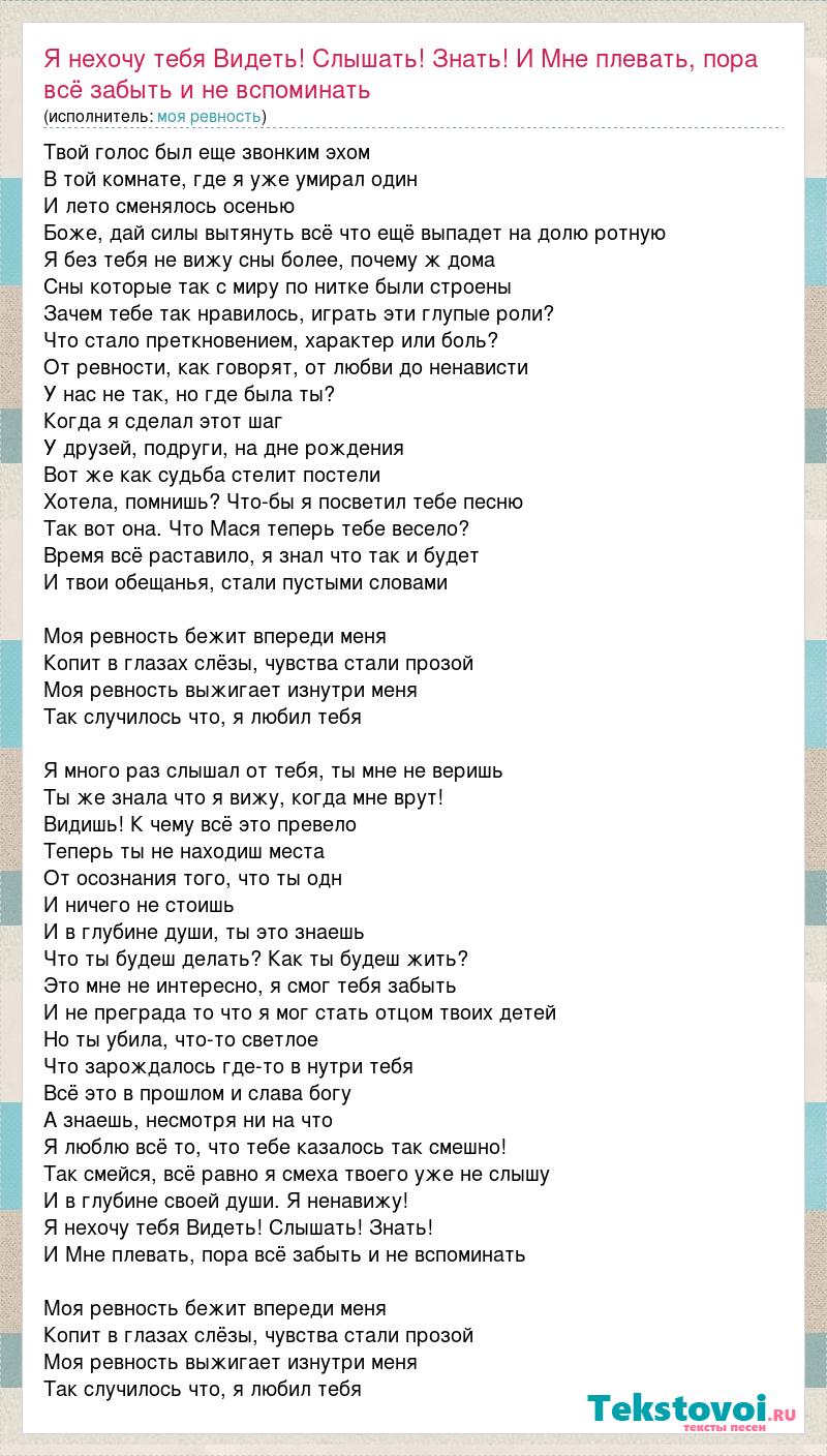 Главная→Исполнители→Моя ревность→Я нехочу тебя Видеть! Слышать! Знать! И Мне плевать, пора всё забыть и не вс