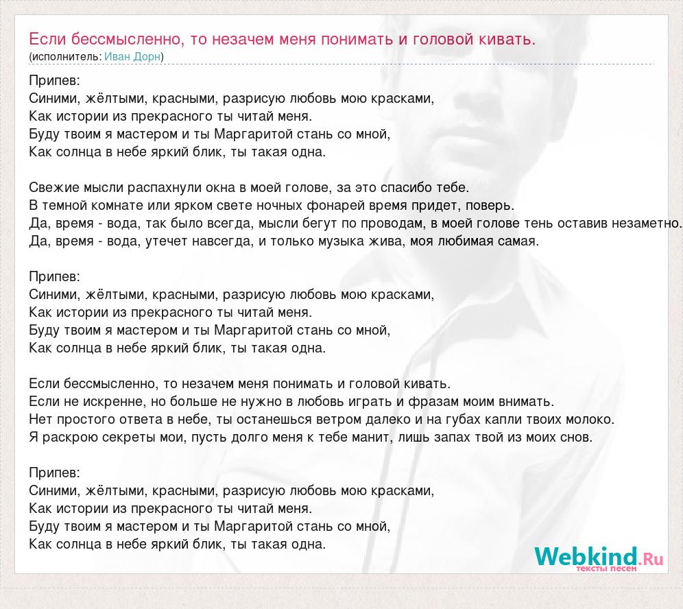 Главная→Исполнители→Иван Дорн→Если бессмысленно, то незачем меня понимать и головой кивать. Если не искренне,