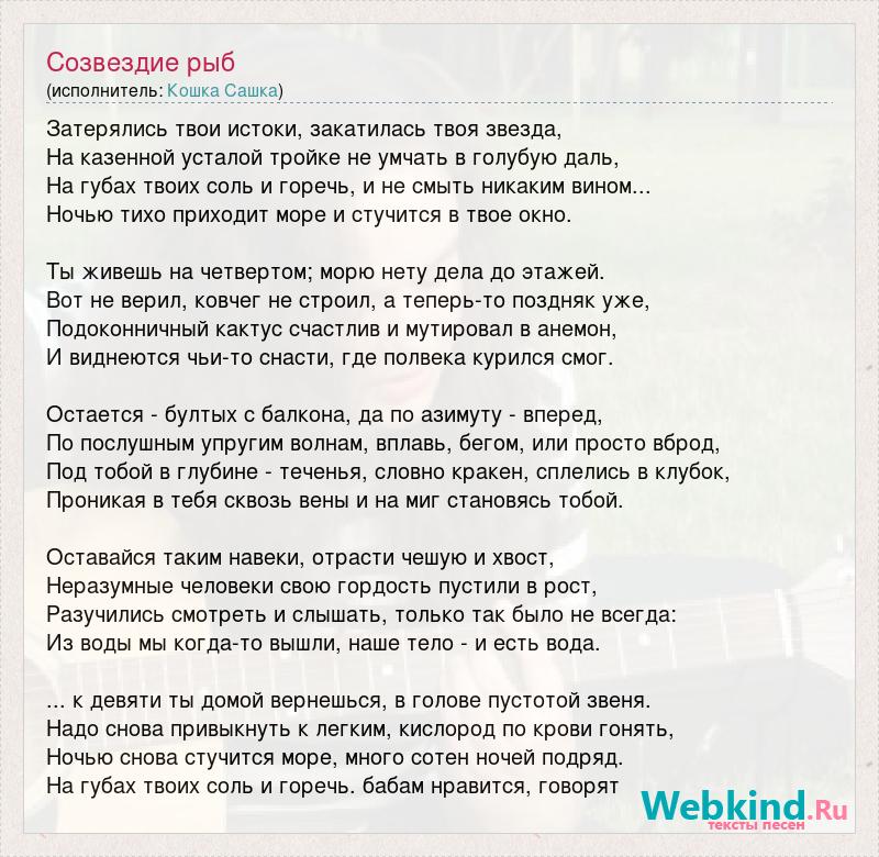 А как ты думаешь, о чем песня "Созвездие рыб" ?
