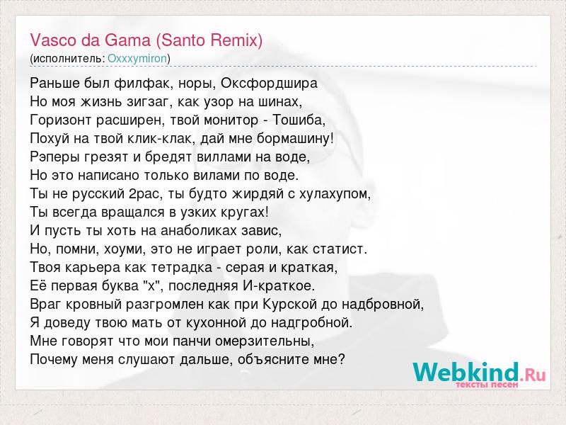 А как ты думаешь, о чем песня "Vasco da Gama (Santo Remix)" ?