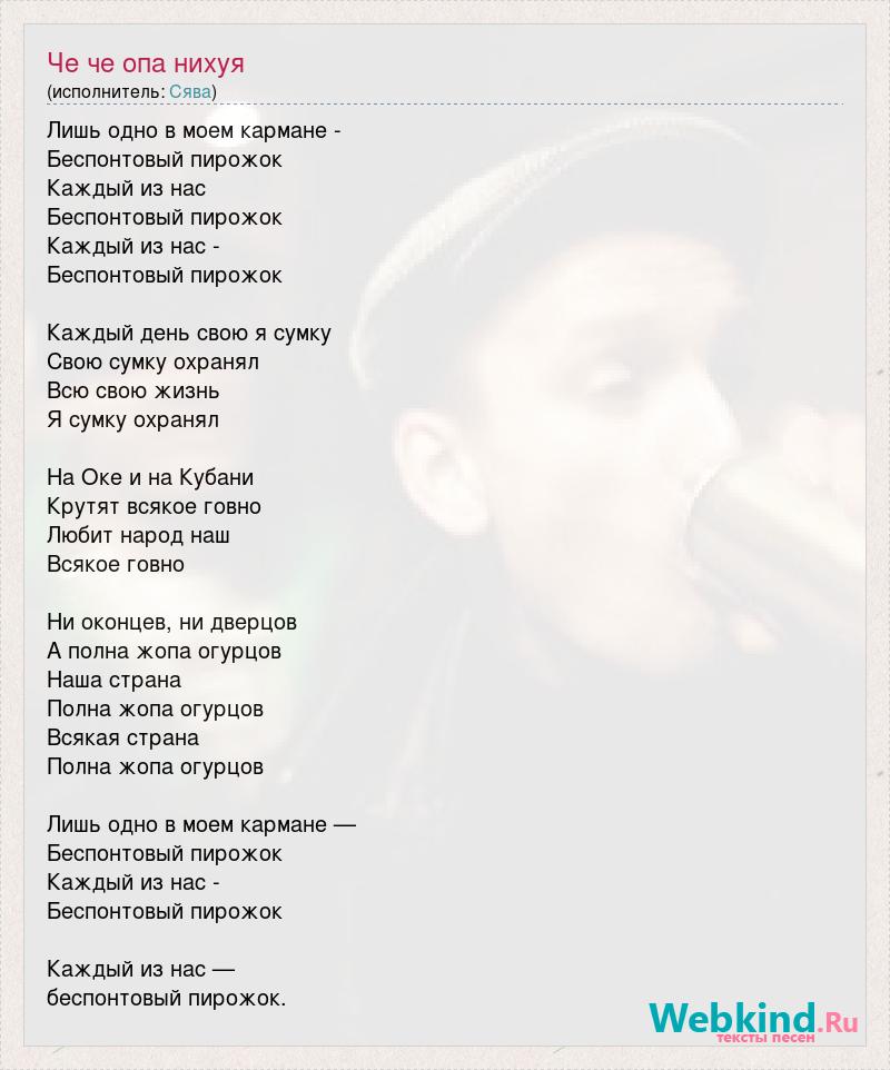 А как ты думаешь, о чем песня "Че че опа нихуя" ?